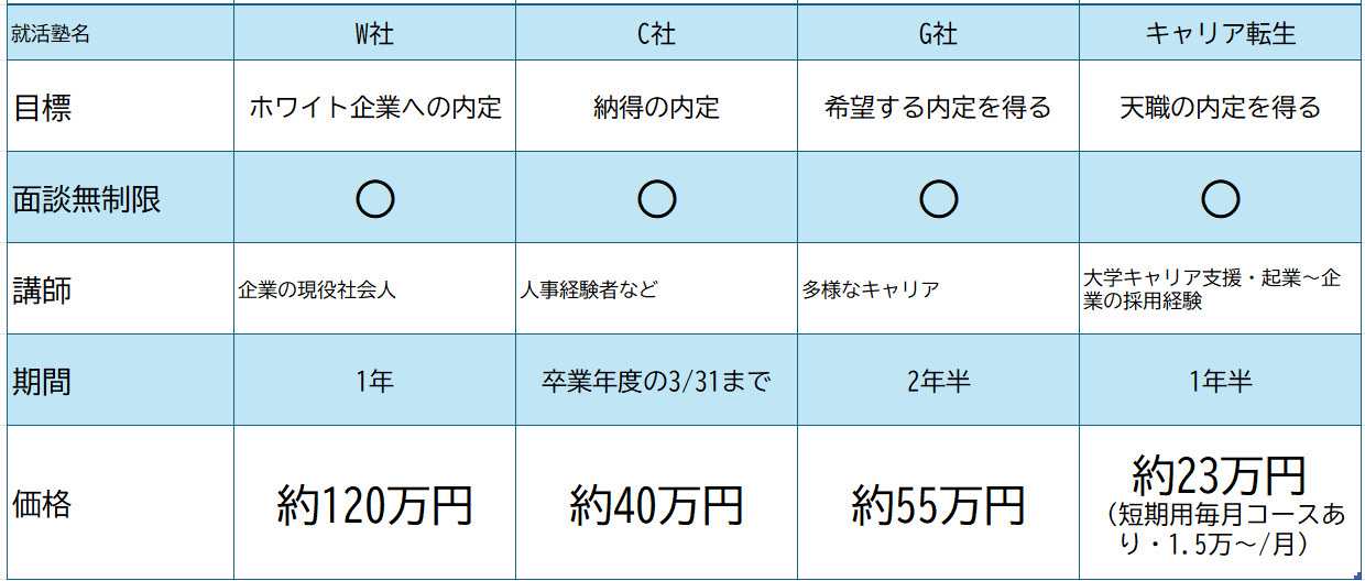 他の就活塾との比較 高品質なのに圧倒的な低価格